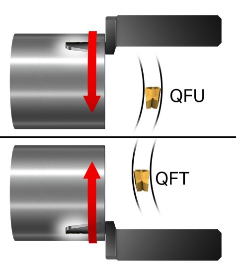 可(kě)為(wèi)順時(shí)針 (QFT) 和(hé)逆時(shí)針旋轉 (QFU) 主軸提供專用(yò ng)刀(dāo)片